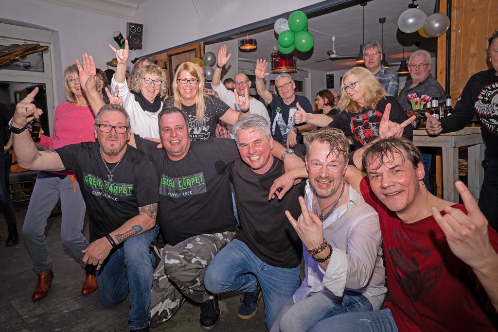 Sie übergaben die Bühne nach 13 Titeln an gute Bekannte. „Green Carpet“, schon mehrmals im Culucu zu Gast, traten mit neuem Programm und neuer Besetzung an. Am Schlagzeug ein gewisser Sander Stoel, am Bass Jörg Zampietro, beide sind oder waren erfahrene Musiker in diversen Bands. Gewohnt routiniert präsentierte Green Carpet die neue Setlist (Foo Fighters, ZZ Top, Aerosmith, Bon Jovi, Oasis, Cranberries, U2 u.a) und hielten das Publikum weiter bei bester Laune.