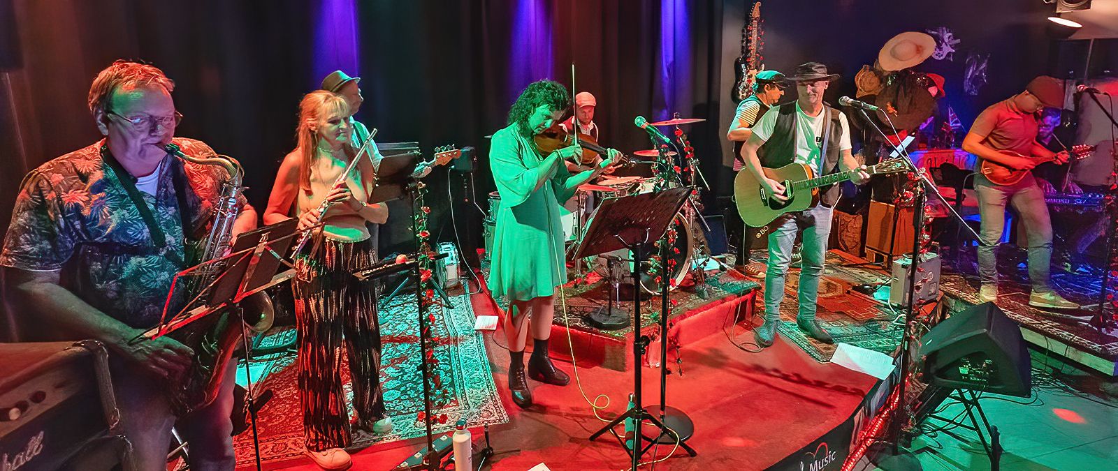 „Waterfolk“ hat sich dem einzigartigen Sound der Waterboys verschrieben. Darüber hinaus beherrscht die Neunköpfige Truppe diverse Interpretationen irischer und schottischer Volksmusik. Auf der Extra-Large-Bühne im Culucu war Platz für Gitarre, Violine, Mandoline, Flöten, Akkordeon, Bass, Schlagzeug, Saxophon und Keyboard. Entsprechend ausgefeilt waren die Arrangements. Mehrstimmiger Gesang komplettierte das Klangerlebnis. Das Publikum ging auf eine musikalische Reise, von intimen Balladen bis hin zu energiegeladenen, mitreißenden Folkmelodien.